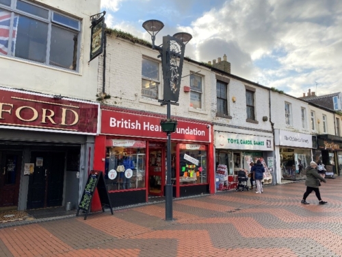 The subject property is situated within a prominent position along Blandford Street directly adjoined by The Blandford Public House and Nobles Toys. Multiple retailers in close proximity include Childrenâs Society, British Red Cross, Age Concern, Cooplands Bakers, Home Bargains, Betfred, Heron Foods and Salvation Army.